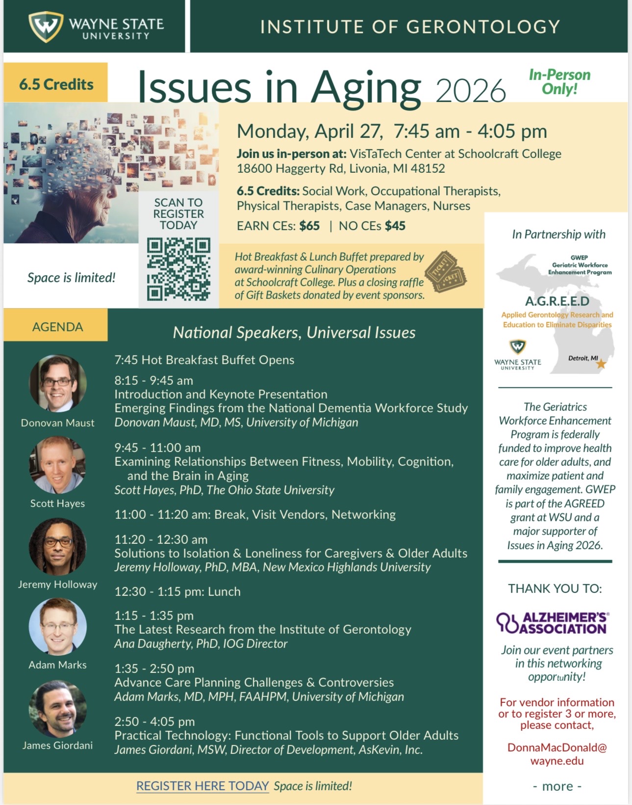 27apr7:45 am4:05 pmIssues in Aging 2026 TrainingNational Speakers and Universal Issues with the aging populations